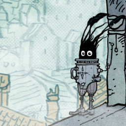 Исследуйте пустынный мир, полностью нарисованный вручную на бумаге в уникальном художественном стиле.