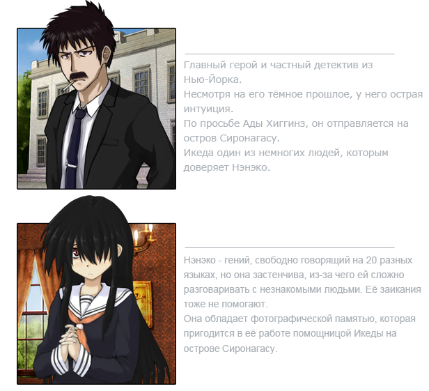 Детективная приключенческая игра и визуальная новелла, события которой разворачиваются на одиноком острове Сиронагасу.