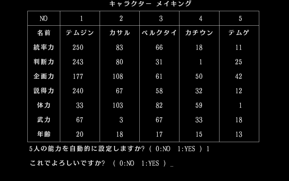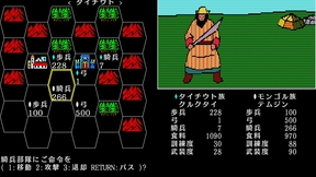 Aoki Ookami to Shiroki Mejika was first released in 1985. Players become Temujin, who has just become 20, and fight to unify the Mongolian plains. After uniting the plains, you are renamed Genghis Khan and proceed to conquer Eurasia. Grow rich and conquer all you come across.