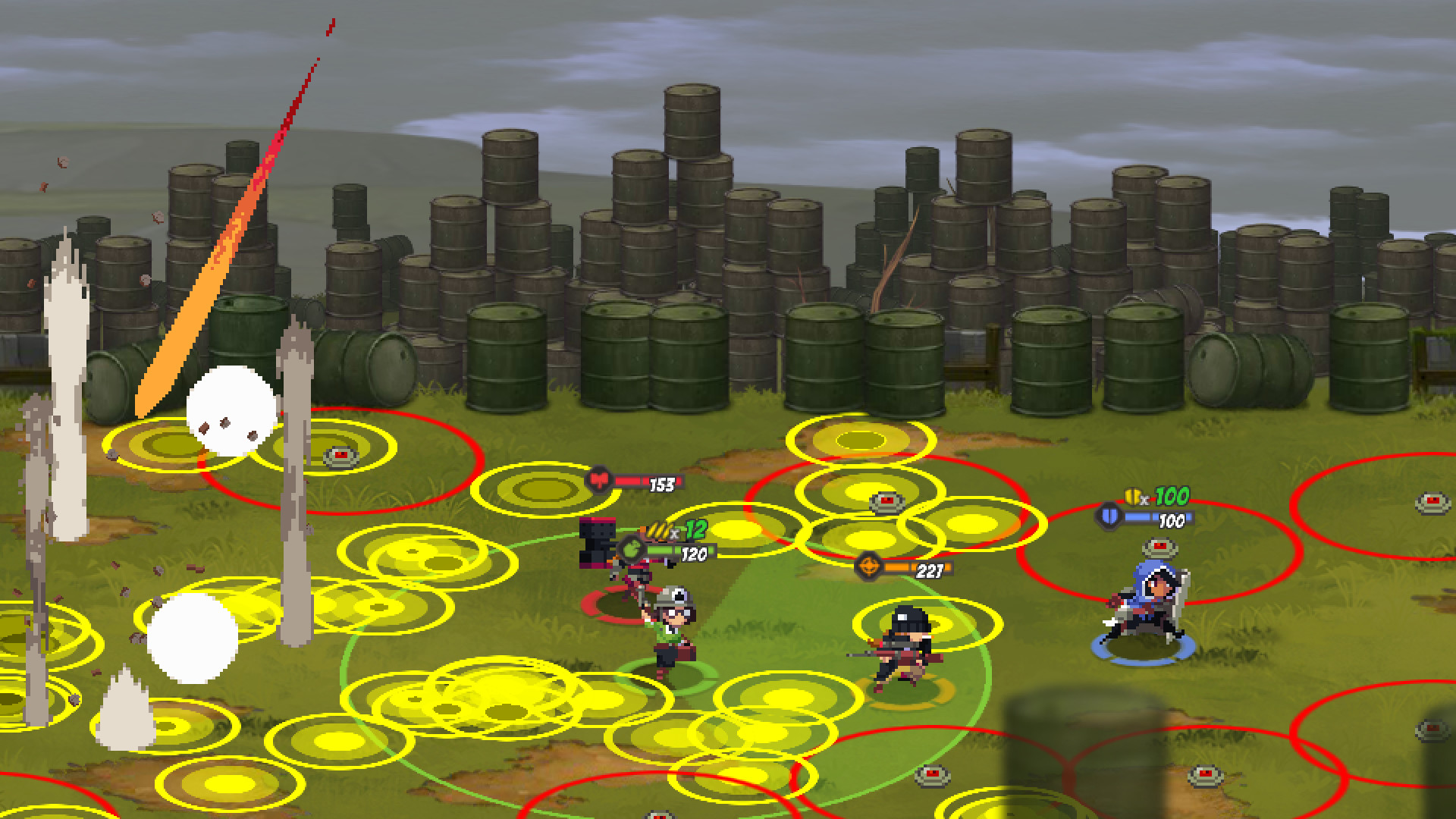 - Для победы над врагами требуется настоящее сотрудничество. Враги выходят на поле боя с цветными барьерами, и только союзники соответствующего цвета могут разбить их.