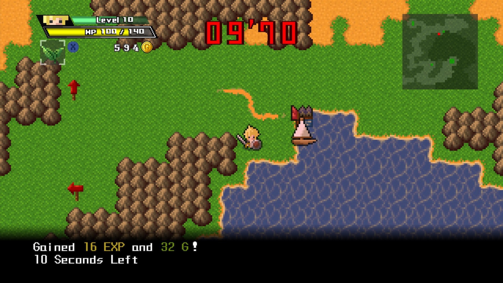 Великолепная задумка, пришедшая к нам с Sony Playstation Portable... Игра, которая требует от вас спасти мир за 30 секунд - это же великолепно! В чём соль? В возможности отматывать время вспять у специальных алтарей, за определённую сумму... В необходимости искать врагов по систему random encounter(как в серии игр Final Fantasy), для получения с них золота и опыта, для поднятия уровня... В необходимости тратить золото не только на отмотку времени, но и на преобретение новой экипировки... В том, что почти всегда просто так мир не спасти... то деревню спасти надо; то клад найти; то чары развеять; а то и вовсе найти проход через лабиринт... В том что у большенства этапов игры есть альтернативное прохождение, которое даст новую вещь/напарника/ответвление в истории! Если вас привлекают приключения, необычный игровой процесс; если вы не боитесь быстроты гэймплея и пиксельной графики - эта игра для вас! Моя оценка - 9 из 10 алчных богинь времени!