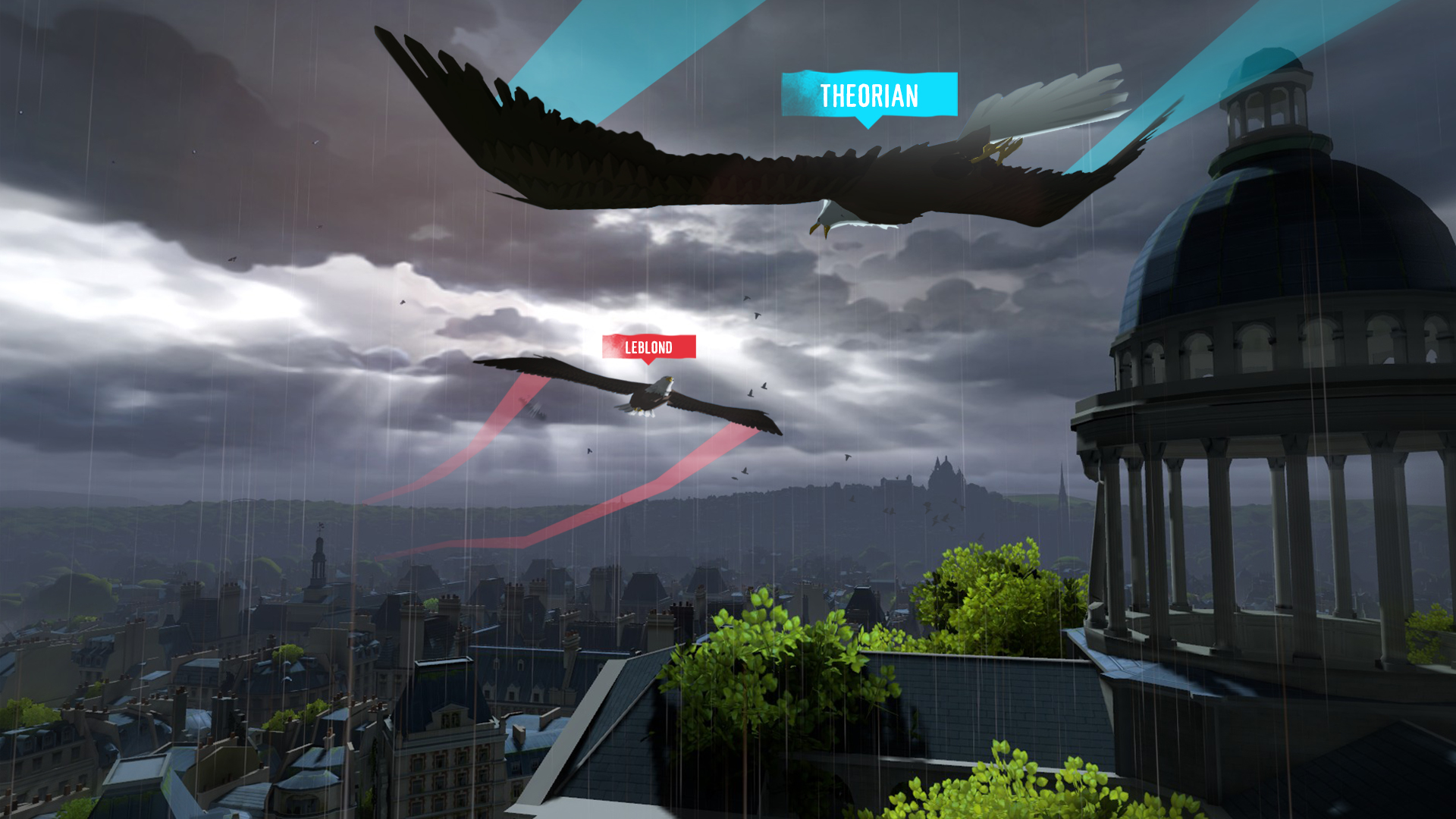 VR-проект Eagle Flight – путешествие над Парижем! Изучайте город и защищайте свою территорию от врагов. Участвуйте в жарких сетевых битвах на 6 игроков! Выполняйте маневры, чтобы победить!