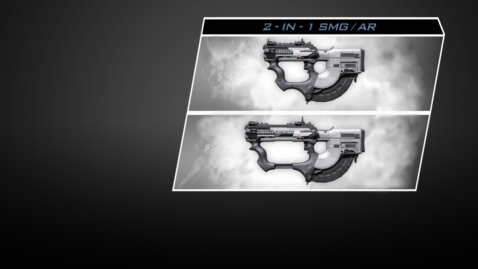Это оружие совмещает две конфигурации - пистолет-пулемет, эффективный на малых и средних дистанциях, и автомат, эффективный на средних и дальних расстояниях. Это уникальное гибридное оружие может переключаться между конфигурациями в самой гуще боя одним нажатием кнопки, что обеспечивает вам непройзденную тактическую гибкость.