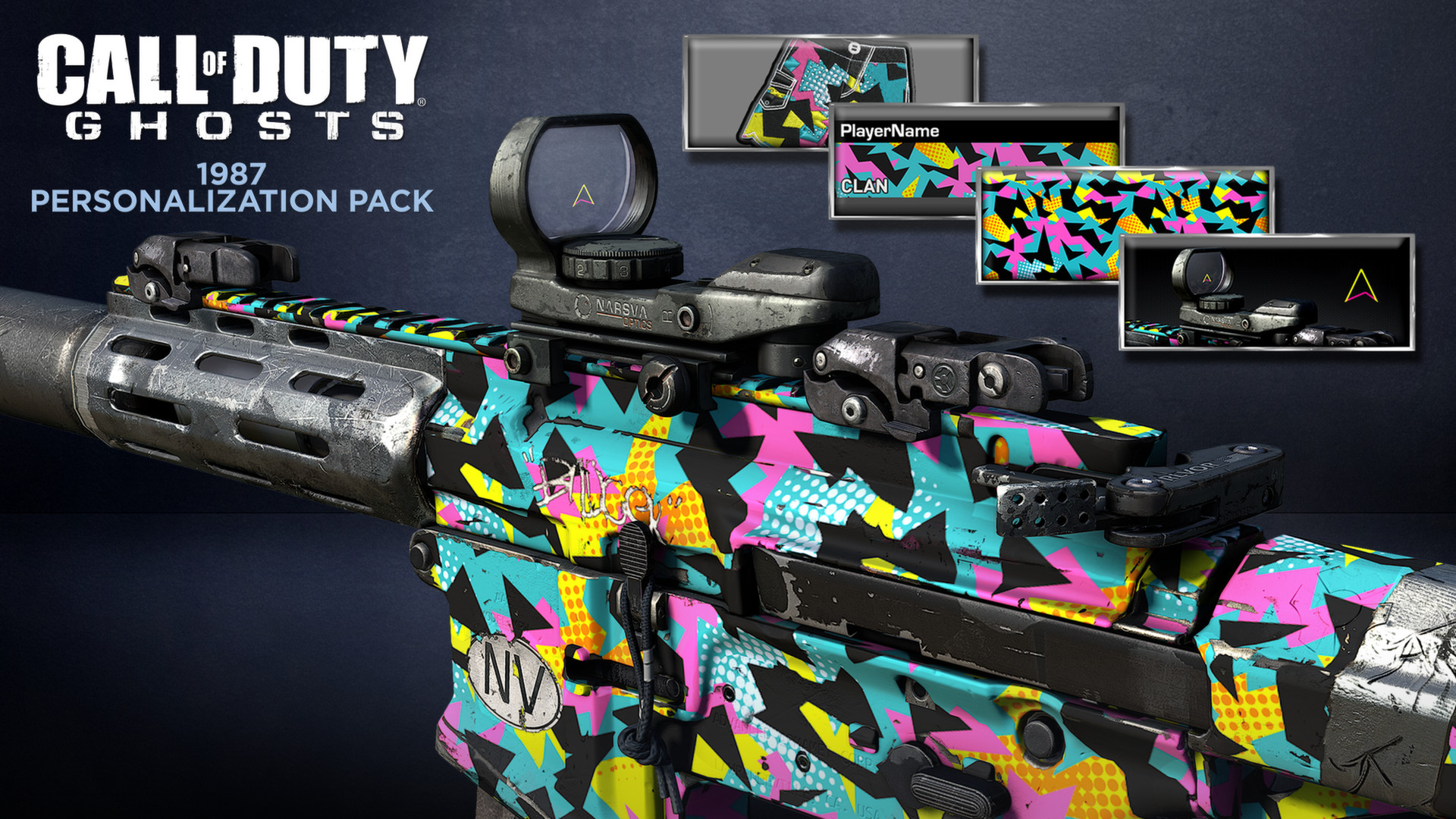 Вернитесь в прошлое с набором оформления 1987. В этот набор входят тематический камуфляж, сетка прицела, нашивка, карточка игрока и фон.