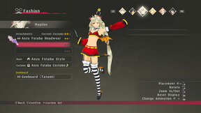 В данном DLC у нас представлено 3 костюма Идолов из манги/аниме “Идолмастер: Девушки-Золушки”, а именно костюмы Рин Сибуи(для Вельвет), Андзу Футабы(для Маджилу) и Кирари Моробоси (для Элеонор). Также для каждой девушки идет прическа, однако прическа для Вельвет не сильно то отличается от стандартной, разве что волосы не сплетены в большую косу. И по одному аксессуару, который занимает аж 2 ромбика! К слову любой аксессуар можно дать любой девушке, а вот костюмы и прически строго привязаны к конкретному персонажу и представлены только в одной расцветке. Зато костюмы изменяют музыку в бою. Представлена 1 одинаковая музыкальная композиция для всех костюмчиков из аниме. Она достаточна приятная, а если она вам надоест, то вы всегда можете ее отключить.