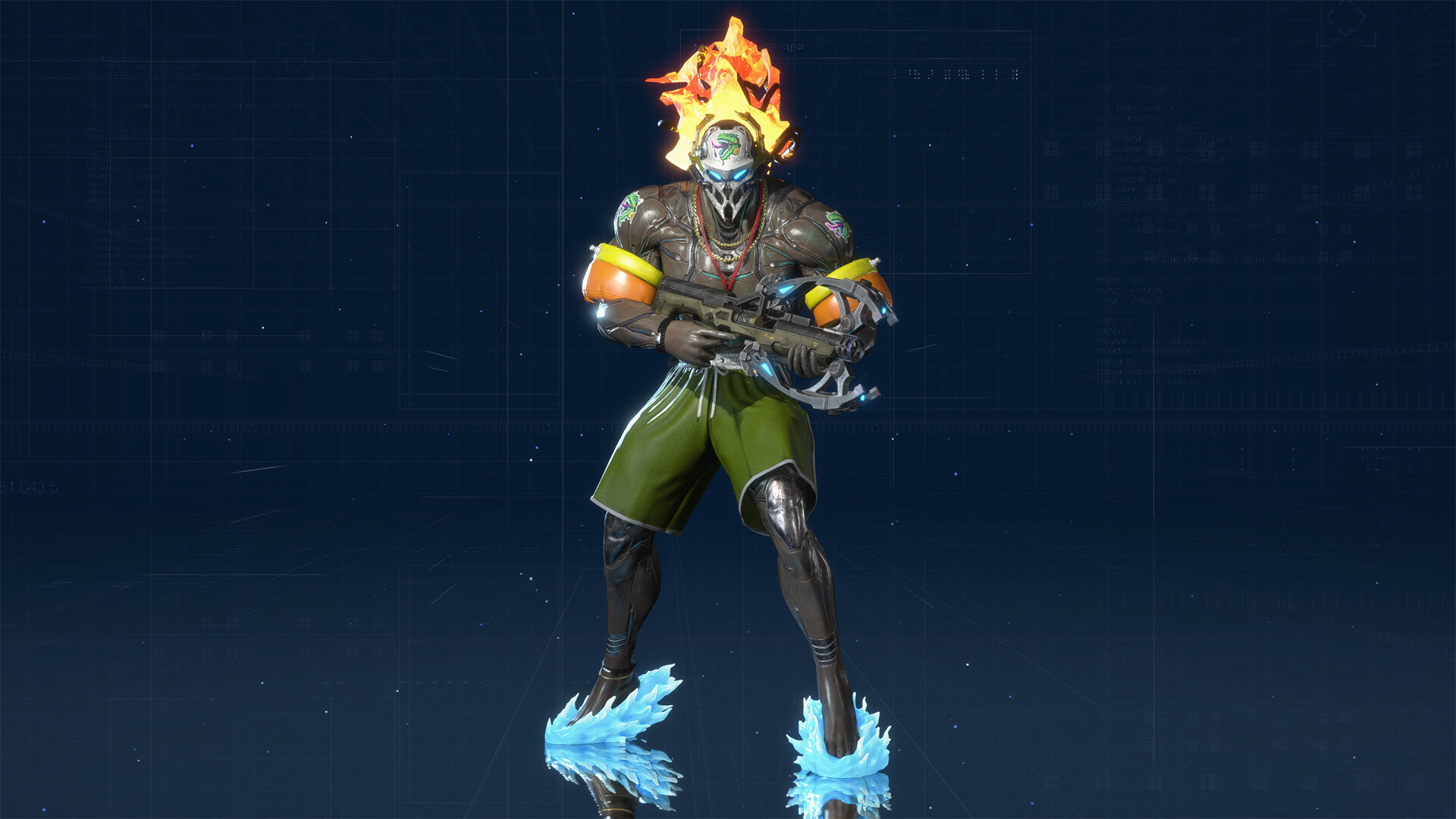 В комплект входят пять предметов внешнего вида для боевого экзоскелета Шквала, который буквально разрывает поле боя гранатами. Этот крутой комплект предметов внешнего вида позволит вам броситься в бой и сделать его по-настоящему огненным!