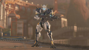 Получите ранний доступ к Снайперу α! Этот костюм оснащен дробовиком с хорошим разбросом вблизи, который при прицеливании выпускает очереди по пять выстрелов. Это позволяет атаковать врага с любого расстояния!