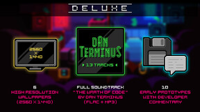 Soundtrack by Dan Terminus (from the album The Wrath of Code; courtesy of Blood Music), early game prototypes with developer commentary and wallpapers.