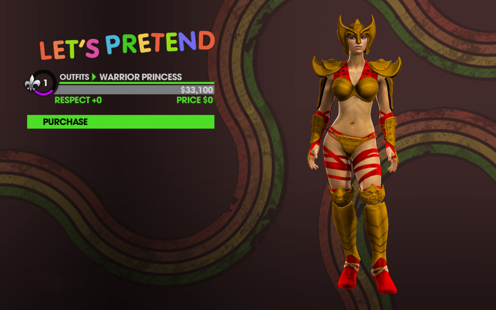 The Warrior Pack adds four combat-ready outfits to your wardrobe. Antiques never go out of style with the Knight of Steelport Armor, or go for something a little more revealing with the Warrior Princess outfit.