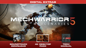 Дополнительные цифровые материалы включают 25 сопроводительных треков к игре MW5: Mercenaries, а также 14 треков к дополнению Heroes of the Inner Sphere. Кроме того, вас ждет коллекция изображений в высоком разрешении, обои для рабочего стола и смартфона и 58 страниц технического руководства, посвященного характеристикам роботов.