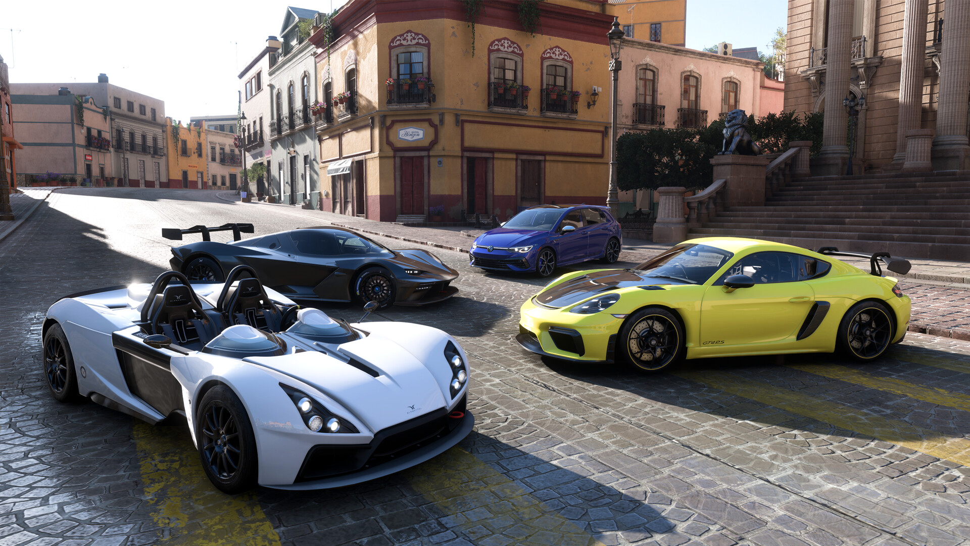Новый набор машин «Суперскорость»: пусть пыль стоит столбом! В дополнение входят 4 специально подобранных автомобиля, в том числе Volkswagen Golf R 2022 г., Porsche 718 Cayman GT4 RS 2022 г., KTM X-Bow GT2 2020 г. и Elemental RP1 2019 г.