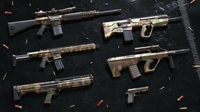 Спрячьтесь на поле боя с набором раскрасок оружия Woodland для команды Security. Эти раскраски можно применить к шести видам оружия.