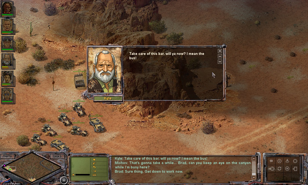 [h1]OLDSCHOOL IS COOL[/h1] Я так понимаю это легкое переиздание (с оригиналом я был слабо знаком в детстве), чтобы новое железо тянуло данного старичка. Правда широкоформатный режим не завезли, благо, что все работает без багов. Вылет был лишь один в финальной миссии после выполнения задания и начала перехода к катсцене. Графика до сих пор хороша, аудио неплохое, модельки машин различны и брутально выглядят, что прямо хочется это все увидеть в нормальном детализированном 3D. Геймплей прост, вся тактика сводится к выманиванию противников на свои войска разведчиками и своевременному размену по HP наряду с починкой. В стелс миссиях тяжко, ведь почему-то враги видят куда дальше своего сектора обзора и переигрывать данные тягомотные сегменты придется много. Сам сюжет интересен, но начинается, к сожалению, банально. Миссий много, доп. заданий на них тоже. Из минусов можно выделить следующее: юниты, потом и кровью добытые в одной миссии не переходят в другую, сам транспорт для героев нельзя выбирать перед стартом задания, ну и конечно же изрядная затянутость кампании, поскольку некоторые задания вообще состоят всего лишь из одной цели и разворачиваются на малых картах. В остальном это хорошая полуRPG-RTS и хотелось бы увидеть ремейк, желательно с учетом негативных моментов, а также расширения лора мира, ведь некоторые моменты о Койотах и самом постапокалипсисе не разъясняются вплоть до финала.
