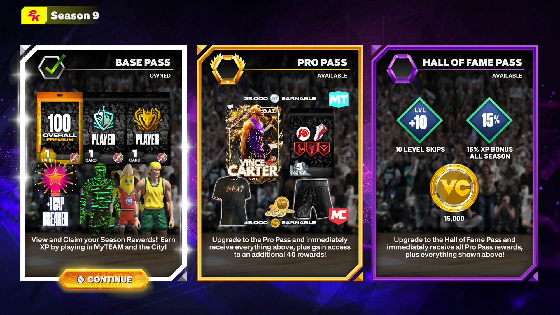 Абонемент Pro Pass: Season 9 открывает доступ к 40 уровням премиальных вознаграждений! Приобретите Pro Pass на 9 сезон и автоматически получите 4 дополнительных вознаграждения Season Pass. *Для пользования NBA 2K25 Pro Pass требуется основная игра, подключение к Интернету и учетная запись NBA 2K.