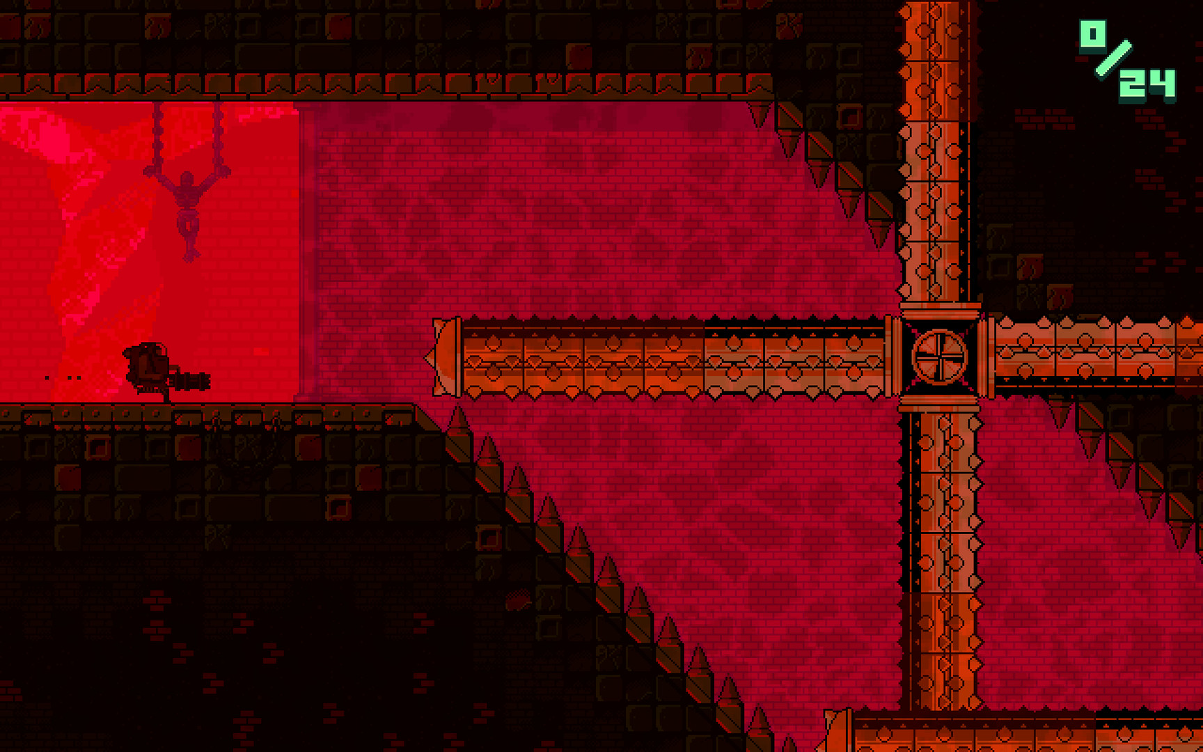 Управление обезоруживает своей простотой. Одна клавиша - выстрел вниз, который позволяет вам лететь. Другая - выстрел вперед, уничтожающий все на вашем пути. Остановок в этом прекрасном, сюрреалистичном мире нет. На каждом шагу вас подстерегают смертельно опасные ловушки и препятствия. Уровни разработаны очень тщательно, так что вам постоянно придется чередовать режимы стрельбы, искусно маневрируя. Смерть здесь не просто возможна, а неизбежна. Бегите, стреляйте, прыгайте, стреляйте, изо всех сил старайтесь выжить, чтобы умереть снова.