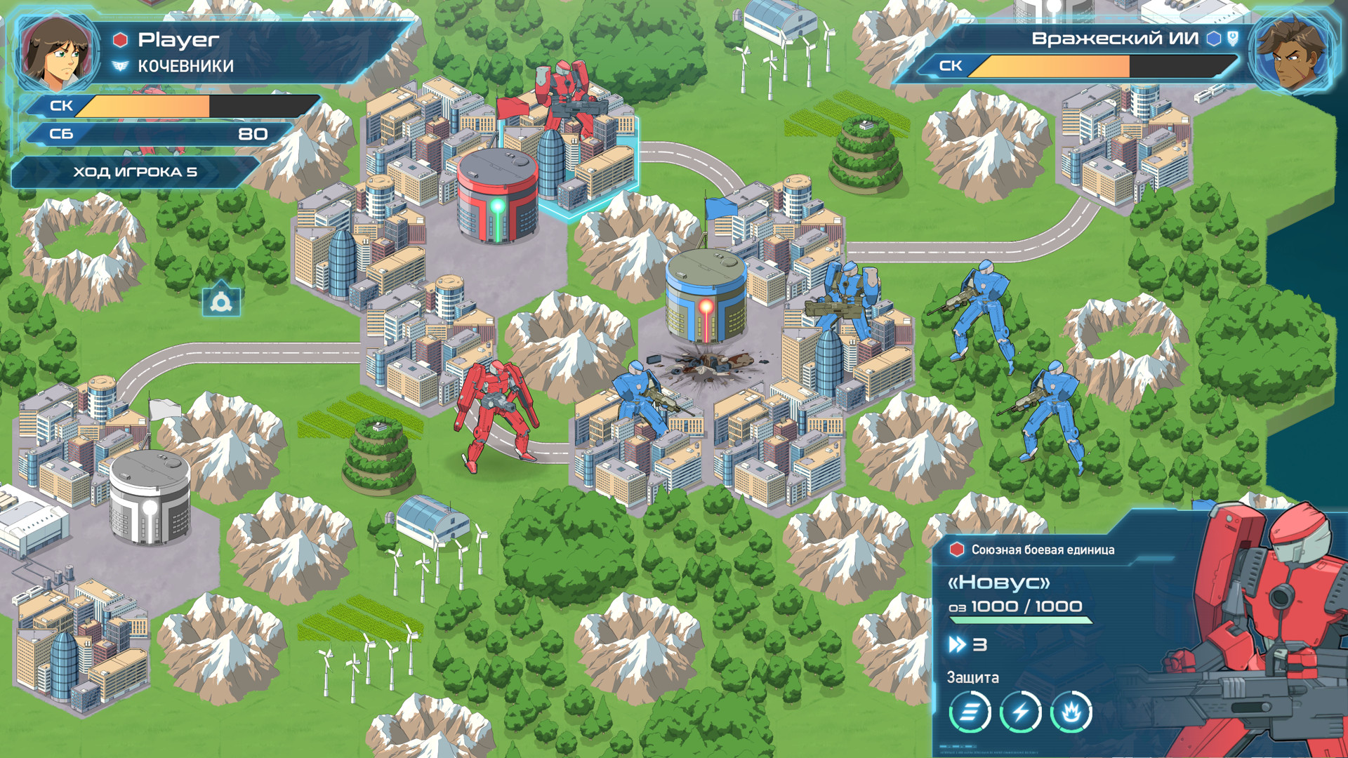 Выбирайте одного из четырех военачальников, каждый из которых представляет отдельную фракцию и обладает уникальными силами, чертами и стилем игры. Призовите на помощь тактическое мышление и размещайте боевые единицы на поле боя, сражайтесь с механоидами противника и наблюдайте за результатом: драматичными сценами сражений, вдохновленными японской анимацией девяностых.