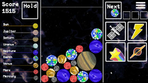 Сбрасывайте планеты, чтобы объединить их. Если они превысят предел, вы проиграете, и они взорвутся!