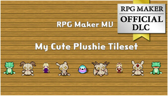 "My Cute Plushie Tileset" is a charming collection of map chips featuring plush toys—some with doll-like elements—complete with pose and facial expression variations.