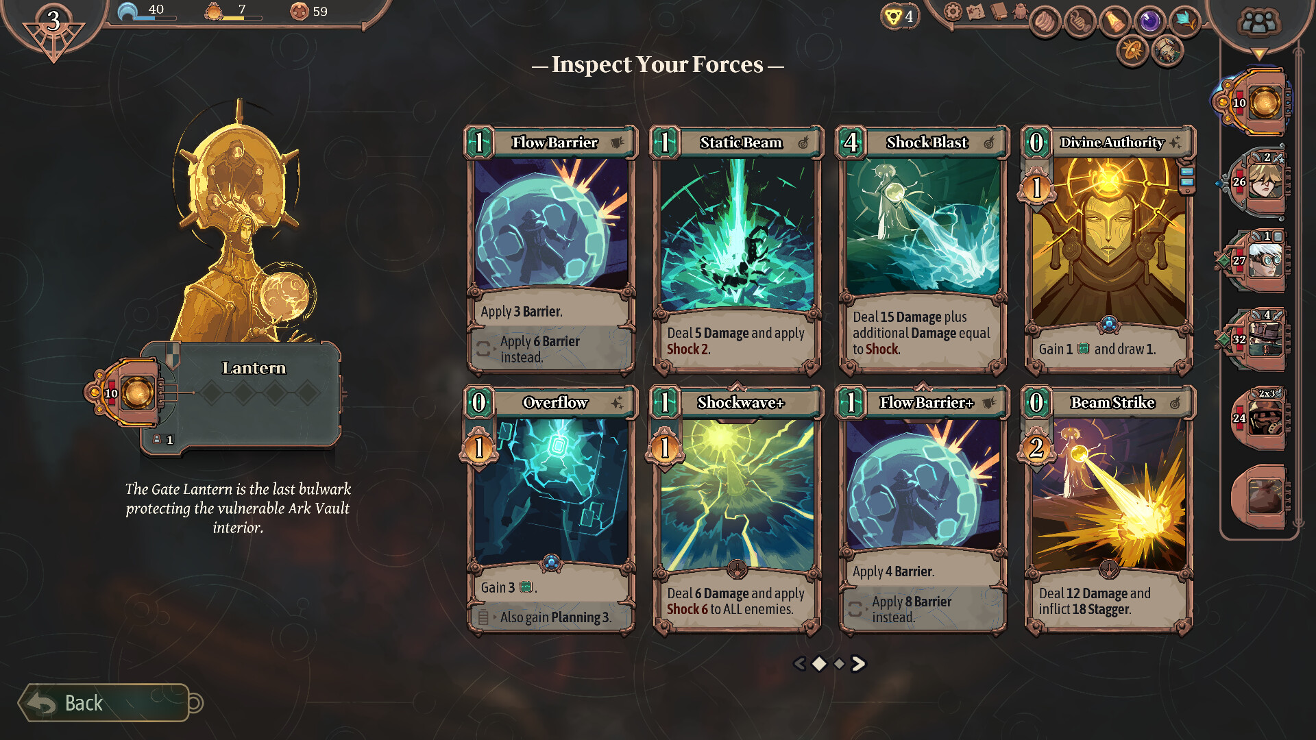 Исследуйте технологии и нанимайте отряды. У каждого отряда есть свой набор карт, которые можно добавлять, удалять или улучшать. Нет единственно верной стратегии: действуйте по ситуации.