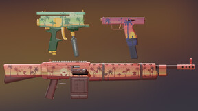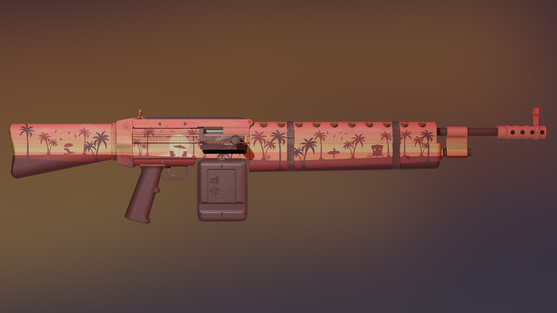 Kick back, catch some rays and waves. The Sundown Skin Pack wraps your loadout in warm tropical hues, from mellow mint to blazing reds and dusky purples. This pack includes one skin each for: - Stapler - Improvised LMG - Handmade Pistol