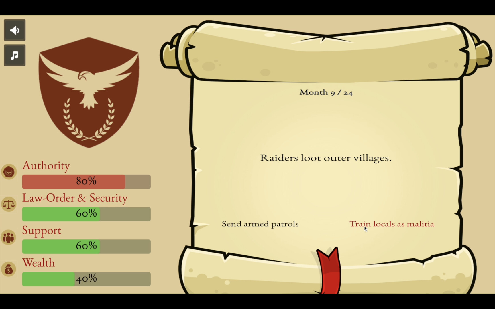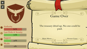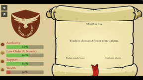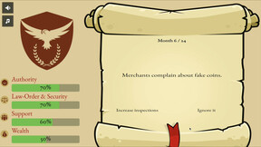 A minimalist strategy game where every decision shuffles the fate of a young republic. Lead the republic through 24 turns while balancing the pillars on which the republic is founded. Survive 24 volatile turns without tipping any of your four meters into ruin — or power.