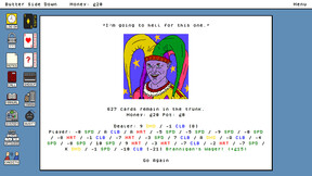 Butter Side Down is a bizarro choose-your-own-choice game. Starring Basil Bonser, Adam Spargo, Grey Michael, Beatrice, Jeep Johnson, and Rotten Ruggerio. Answer questions, take calls, play card games, and solve one hell of a mystery.