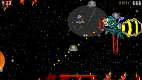 Zoom 'n boom with the craziest outer space war pig around! Get MAJOR upgrades, fill out your Quimdex with 100 outer space outlaws to collect, and blast through multiple INSANE worlds. Warp with me now!