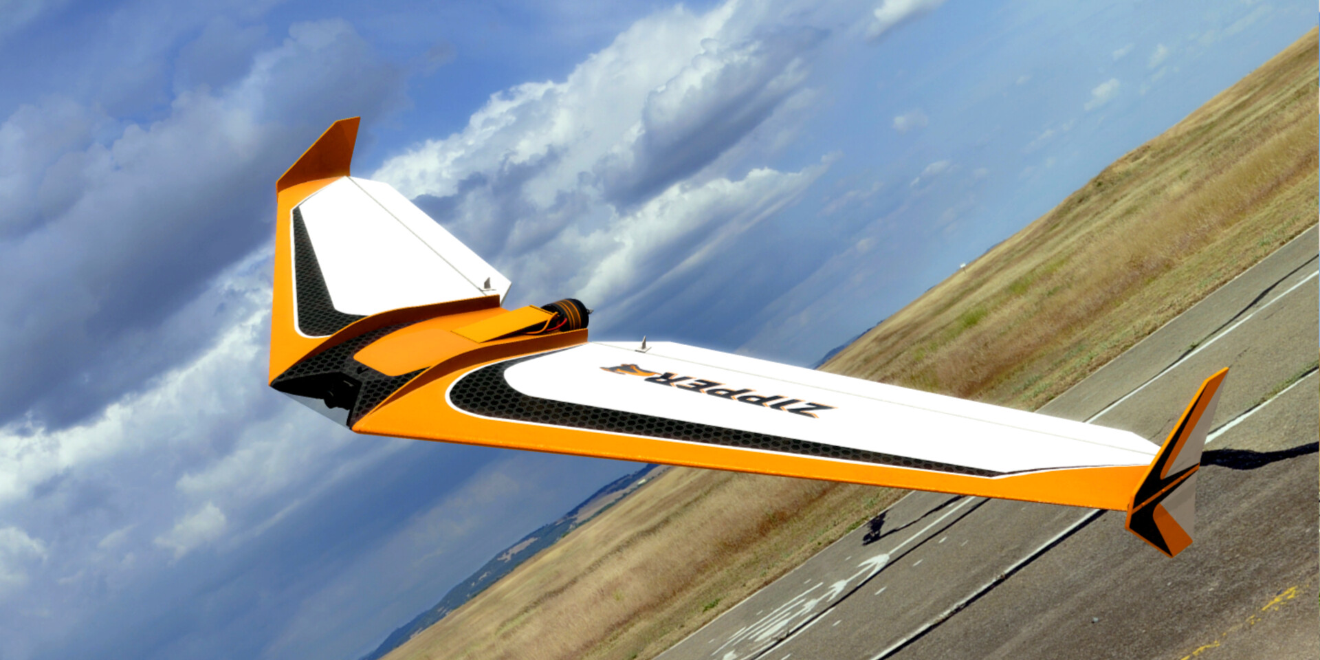 The Zipper is a 1.0m-wingspan FPV flying wing with a symmetric airfoil.