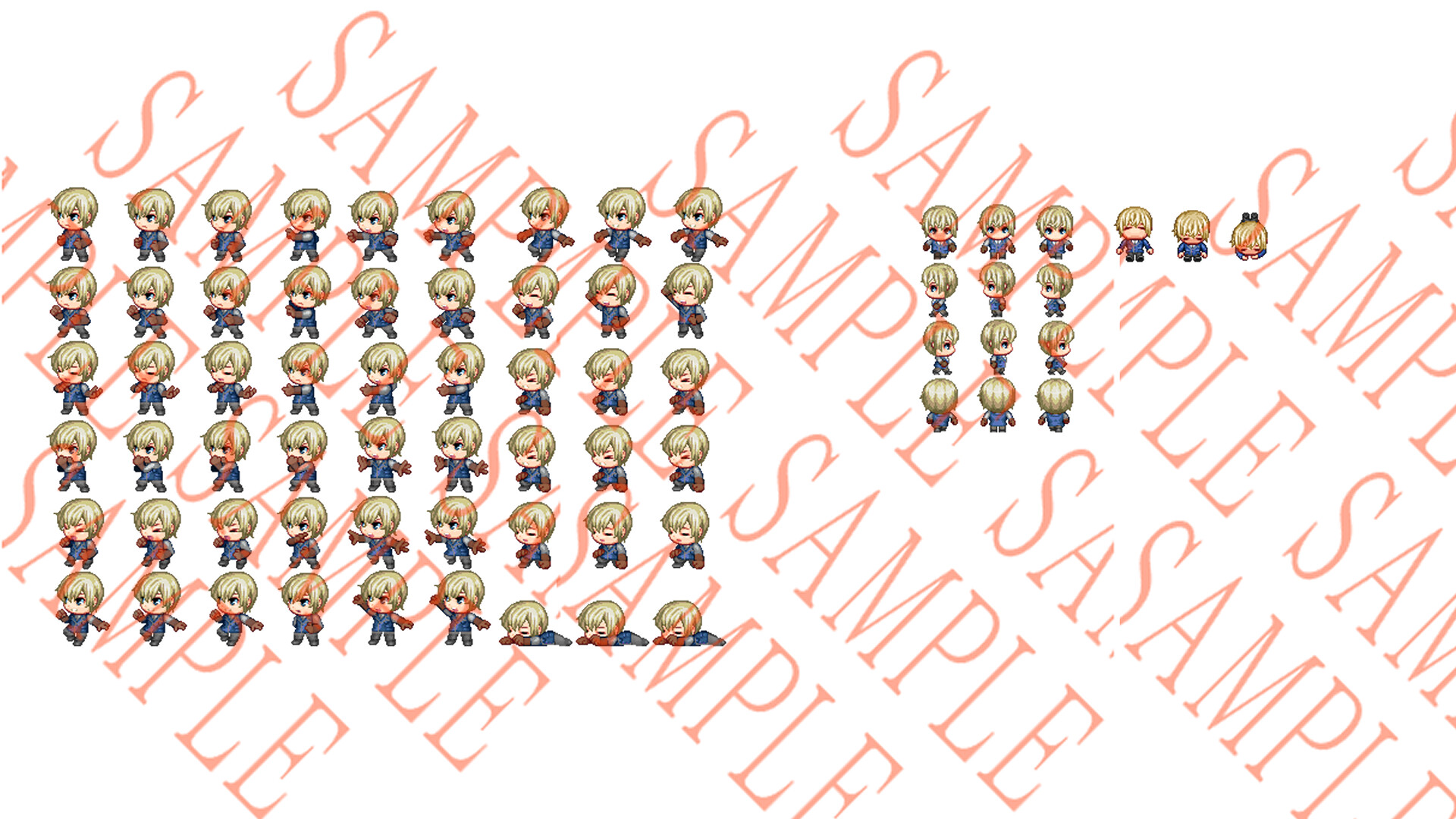 This is an actor graphic set designed for use with the RPG Maker series. Pictures: 25 files SV Actors: 1 file Faces: 2 files Characters: 2 files