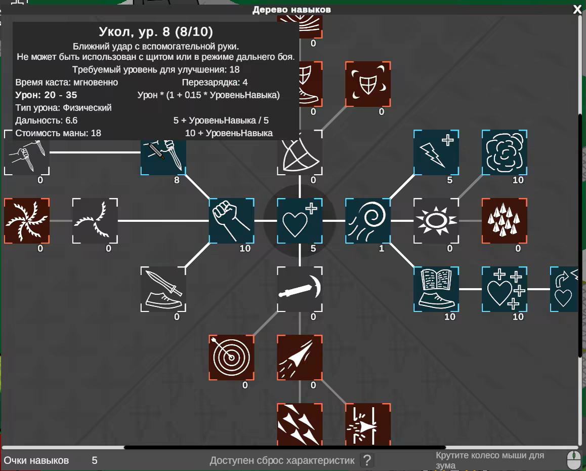Дерево навыков все еще в процессе заполнения.