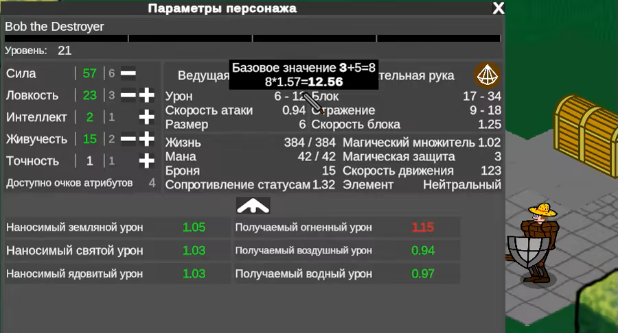 Я стараюсь создать систему характеристик как можно более прозрачной и не прятать, что и как высчитывается. Во многом желание создать игру родилось из расстройства от того, как многие игры заставляют игроков гадать или напрямую лгут.