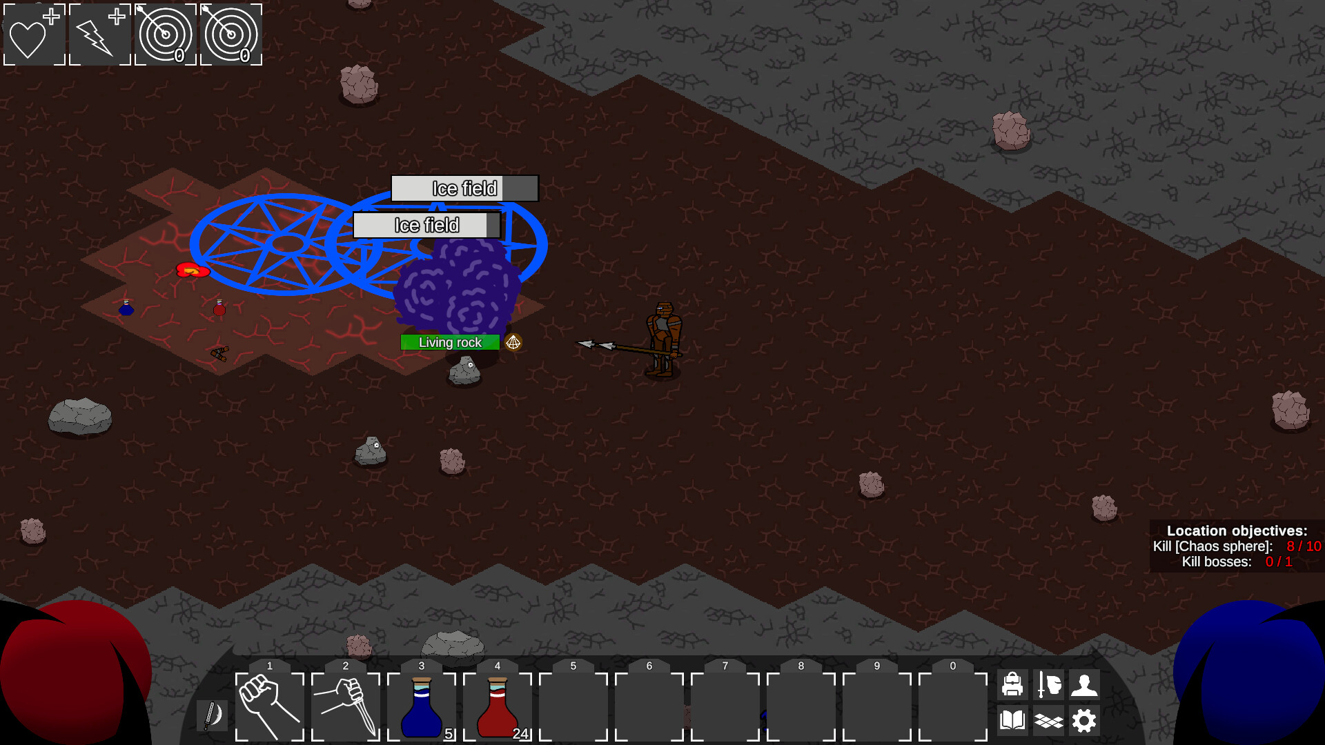 Магия уповает на заклинания с различными элементами.