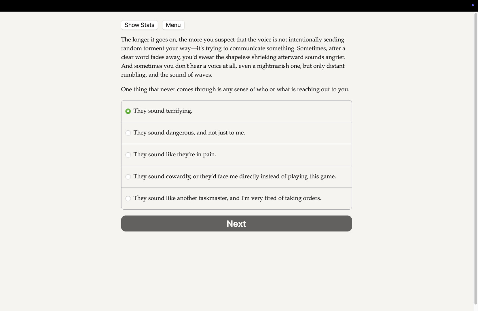 Climb out of your tomb to avenge your own death in this haunted fantasy epic! Defy dragons, duel the dead, and face the nightmare at the bottom of the sea! It's an interactive epic fantasy novel, without graphics or sound effects, fueled by the vast, unstoppable power of your imagination.