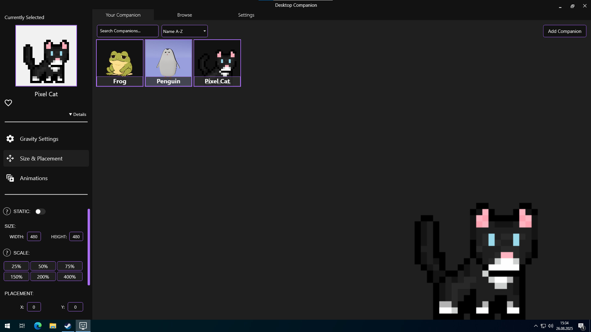 Иногда просто приятно иметь что-то на экране — что-то, что реагирует, движется и напоминает, что вы не одиноки. Работаете ли вы, учитесь или просто отдыхаете, Desktop Companion дает вам небольшое присутствие на рабочем столе — тихого друга, который всегда рядом.