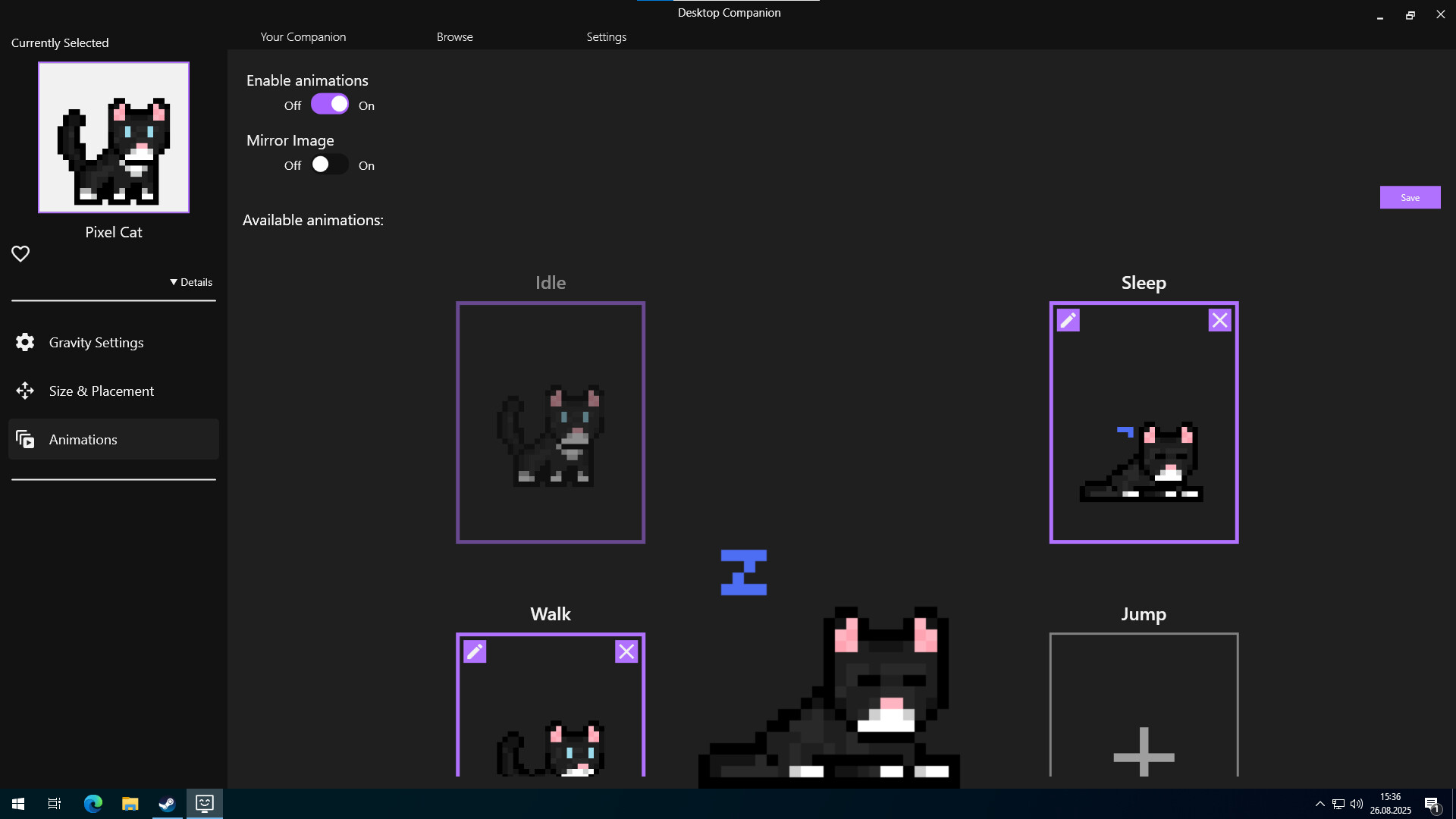 ?️ Анимации – Оживите с помощью пользовательских анимаций. Анимируйте состояния покоя, движения или реакции — ваш компаньон становится более выразительным.