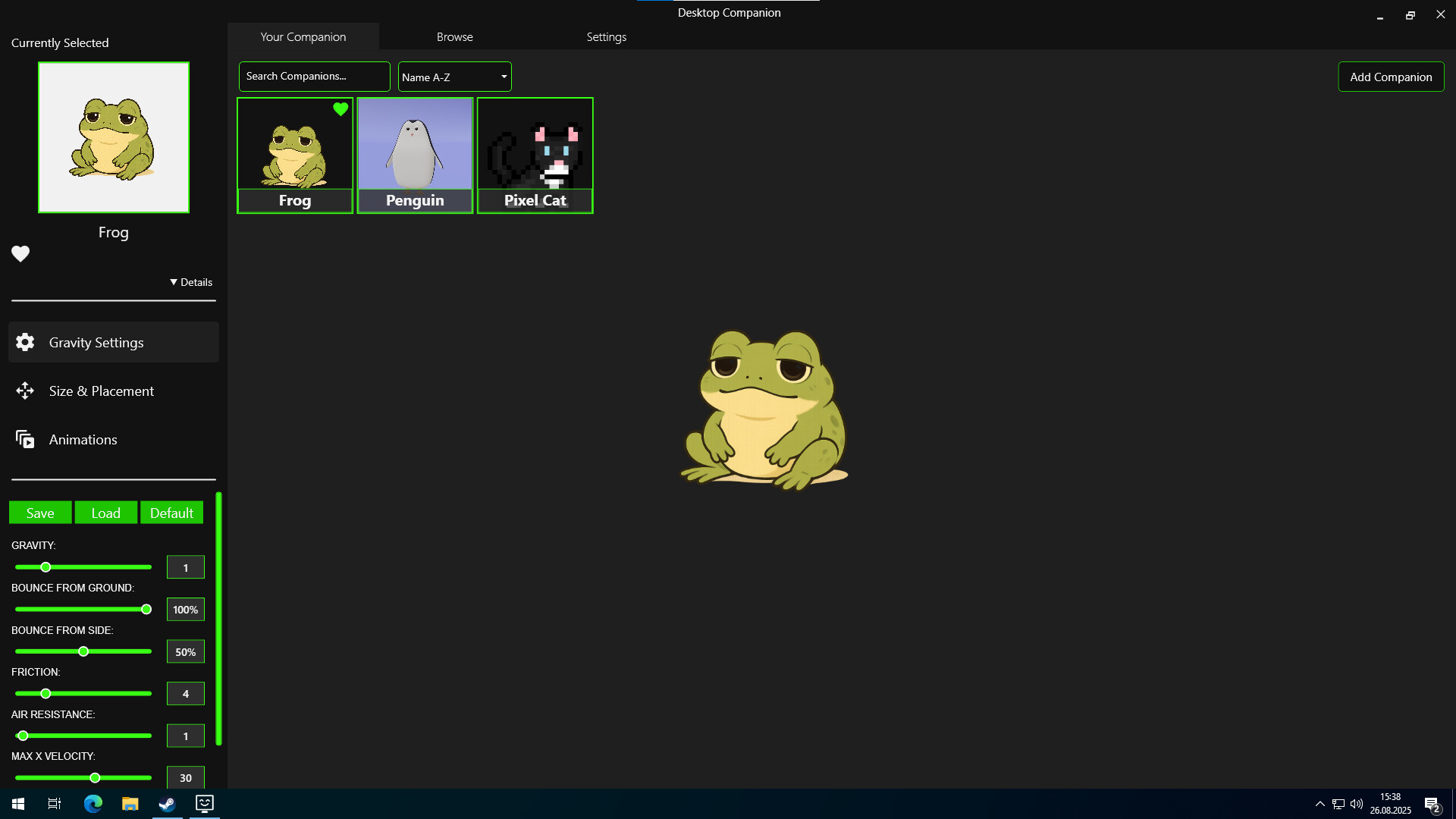 Desktop Companion позволяет добавлять интерактивных 2D и 3D персонажей на ваш экран. Перетаскивайте их, изменяйте размер, анимируйте и даже применяйте гравитацию. Это веселый, настраиваемый способ оживить ваш рабочий стол — и сделать его чуть менее одиноким.