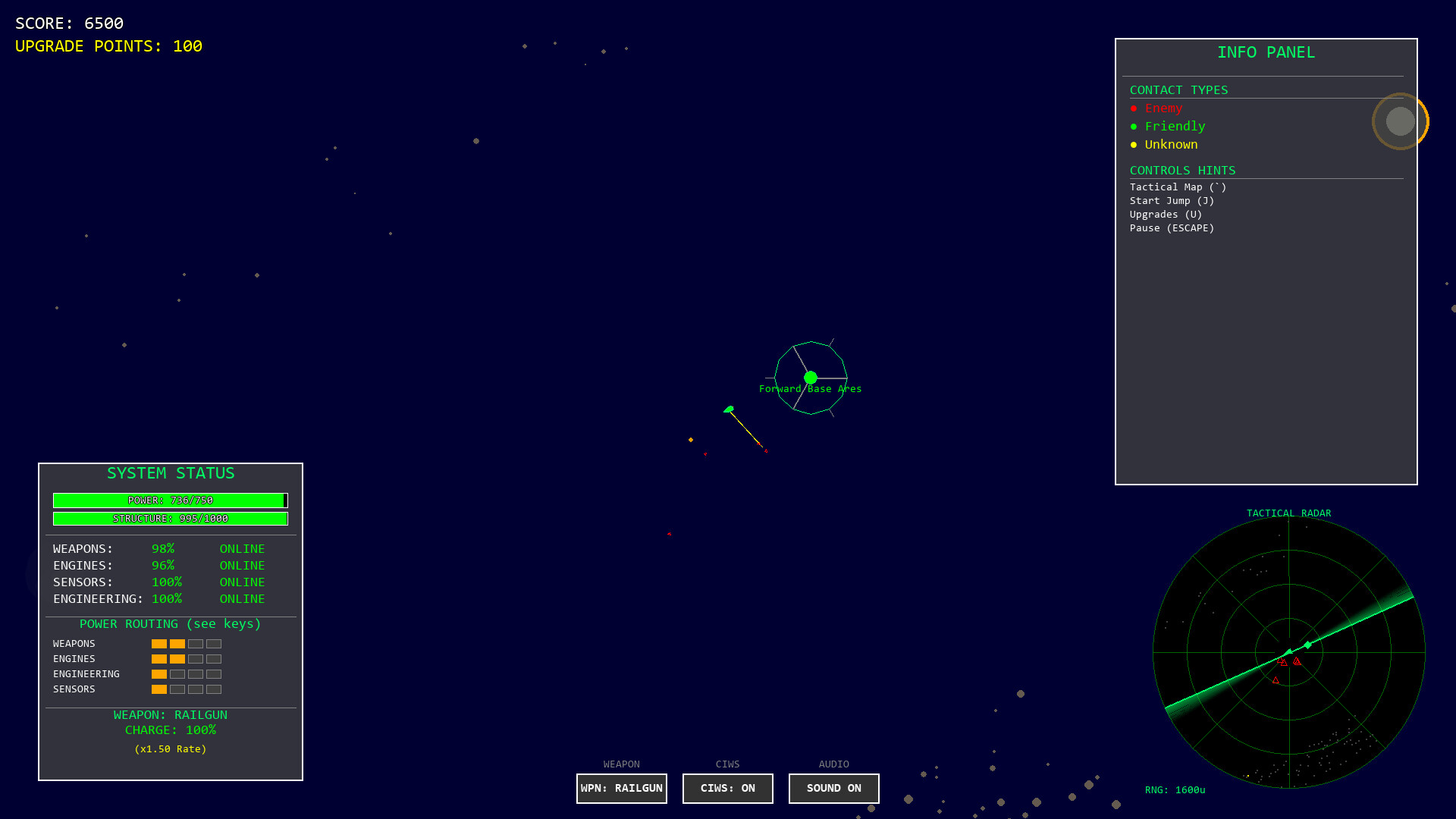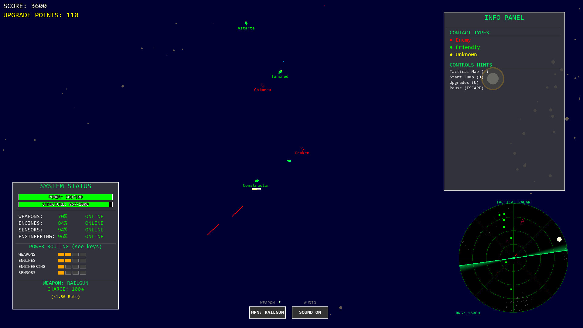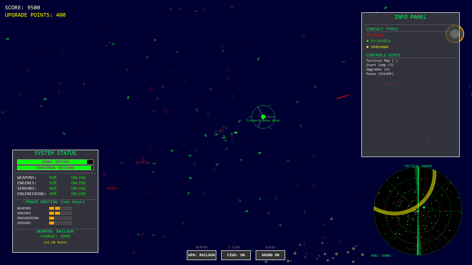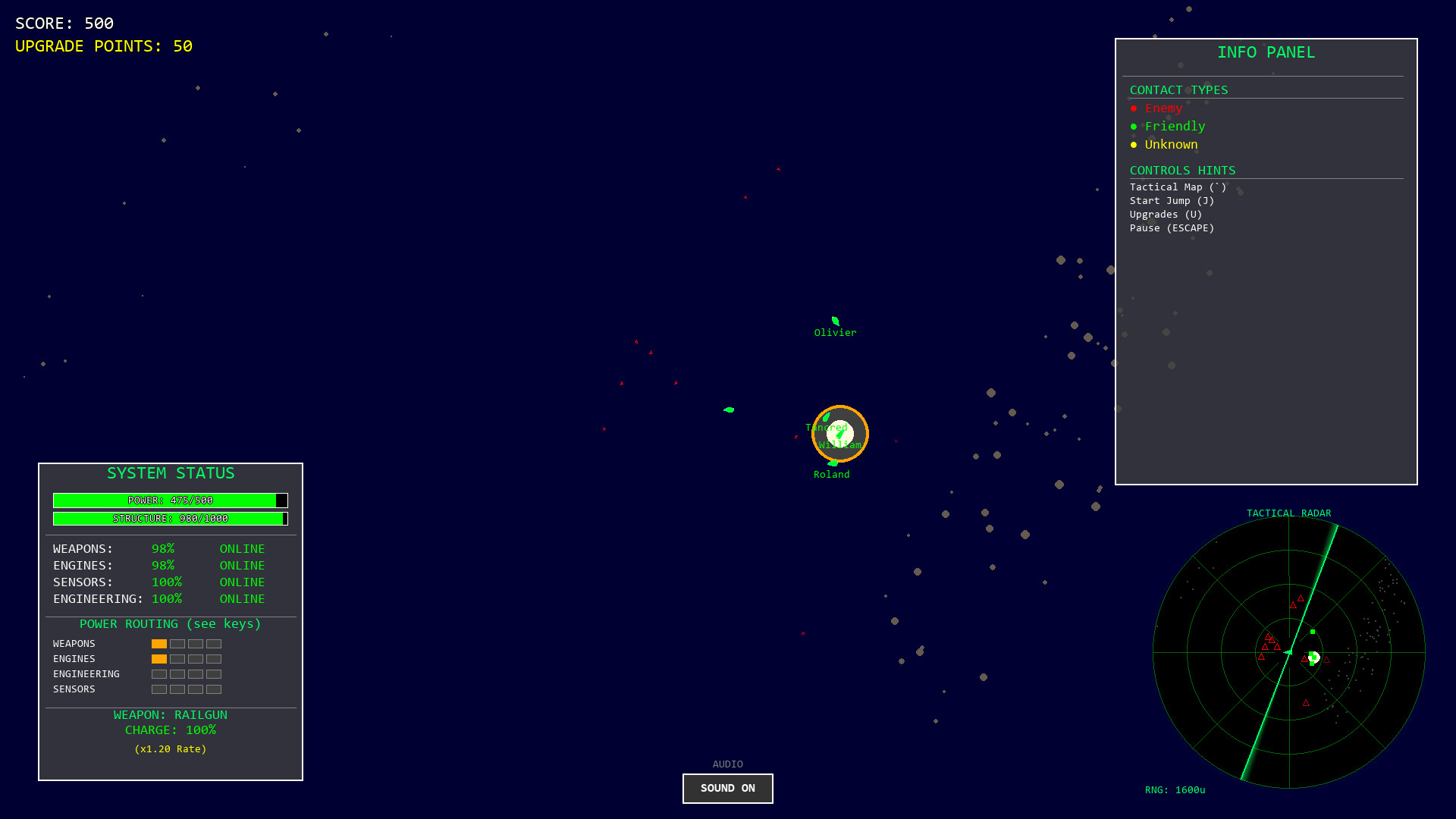 Doppelganger is a a top-down tactical space game. Command your ship, route power to critical systems, and outsmart enemy fleets. Earn points to upgrade your weapons and defenses.