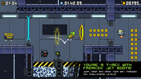 Реактивный Рекс (JumpJet Rex) погружает игроков в удивительный мир 16-разрядной рисованной графически и классической чиптюн-музыки, которые бесспорно перенесут игроков в славные времена 2-D игр в начале 90-х годов.