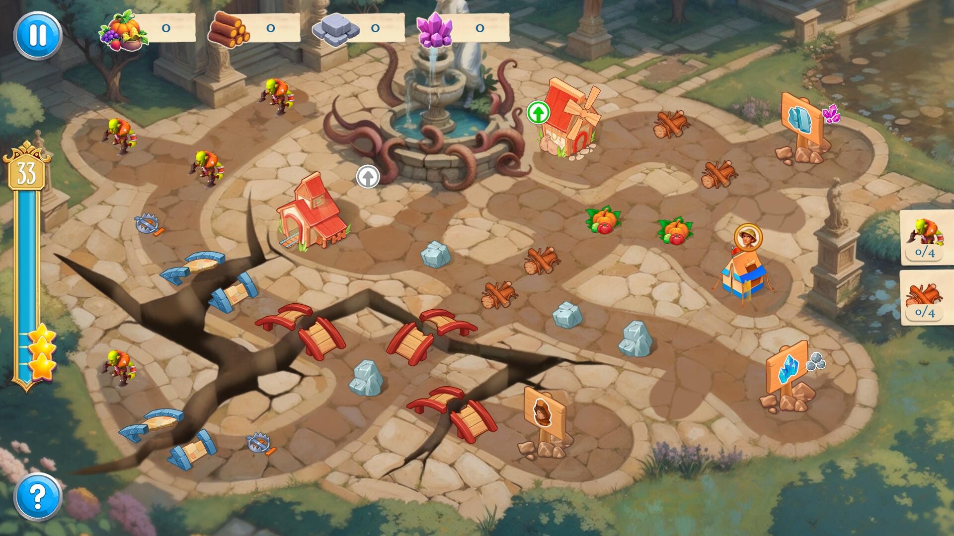 Lost Artifacts — классическая игра в жанре «управление временем» с распределением рабочих: на каждом уровне вы быстро собираете ресурсы (еду, древесину и т. д.), строите и улучшаете сооружения (ферму, лесопилку, дома для рабочих), устраняете препятствия и стараетесь выполнить задачи на «3 звезды» до истечения времени, используя временные ускорения (ускорение, остановка времени, ускорение строительства).