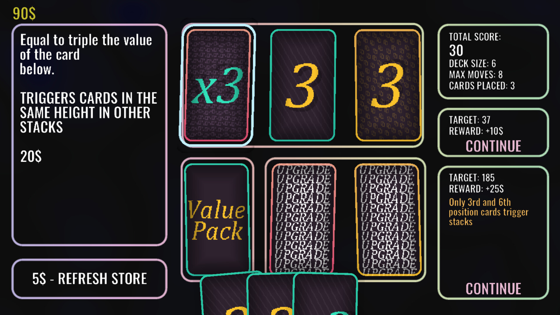 Stack cards and combine their effects to beat target scores in this arcade deckbuilder with persistent progression and endless replayability!