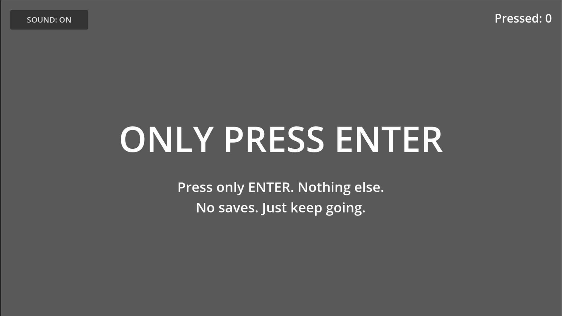 One-key micro game: press ENTER, read meme pop-ups, survive wrong-key penalties (shake/flash), unlock a perfect-streak bonus, and finish with an ENTER gate. Short, offline, no data.