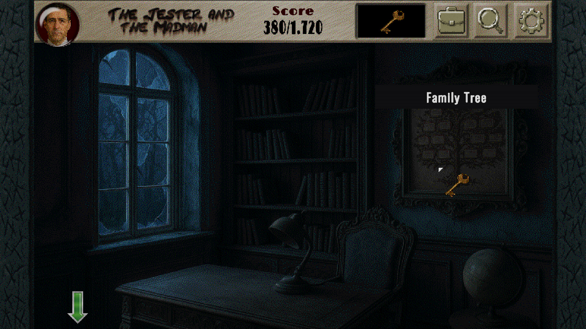 In the grand tradition of 90s adventure games, The Jester and the Madman challenges you to explore richly detailed environments, talk to strange and suspicious characters, collect and combine items, uncover hidden clues, and solve challenging logic-based puzzles. There’s no combat, no timers, just methodical investigation, clever problem-solving, and immersive storytelling.
