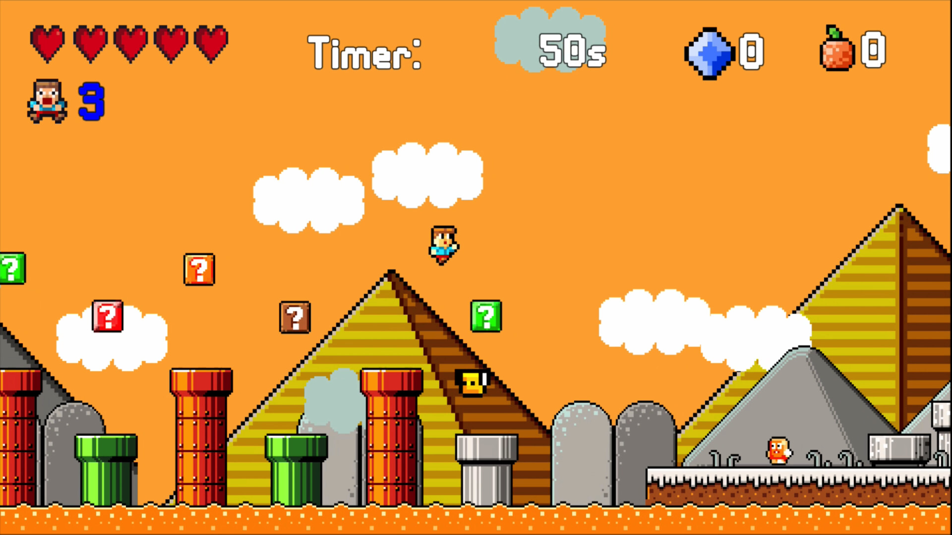 Jump, dodge, and fight your way through deadly traps, tricky platforms, and colossal bosses in this retro-style 2D platformer. Precision and timing are your best allies.
