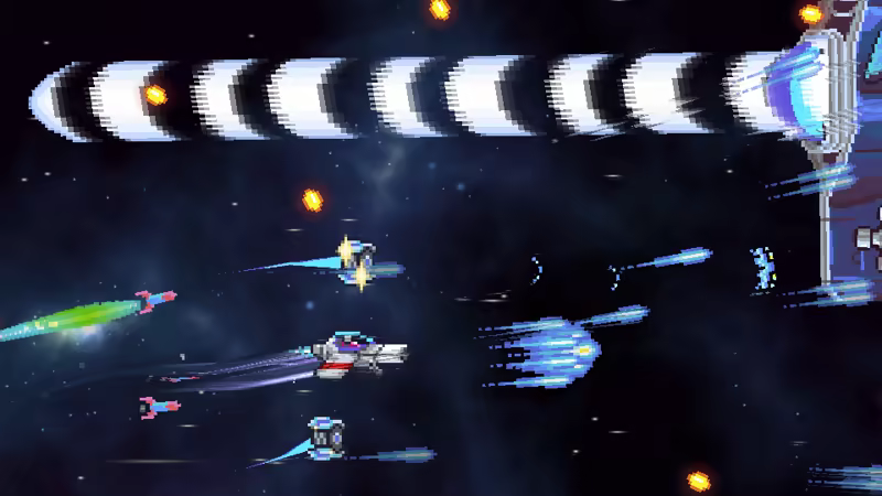 The horizontal SHMUP with a grappling hook. Join a ragtag crew and fight against a Cosmic Destroyer from another galaxy. Dive into a high-intensity shooter with twisting stages, branching paths, brutal enemies. Choose your ship, grab powerful weapons and upgrades - it's time to strike back!