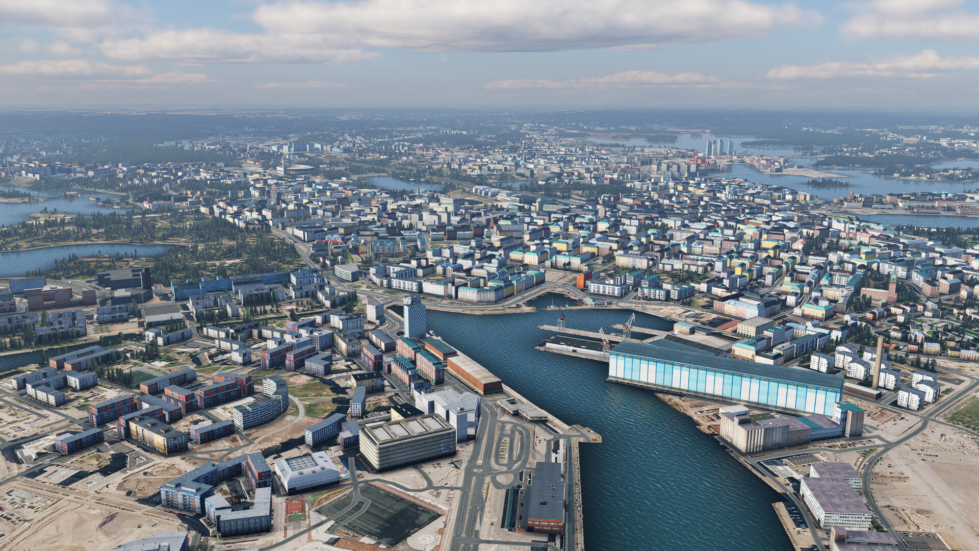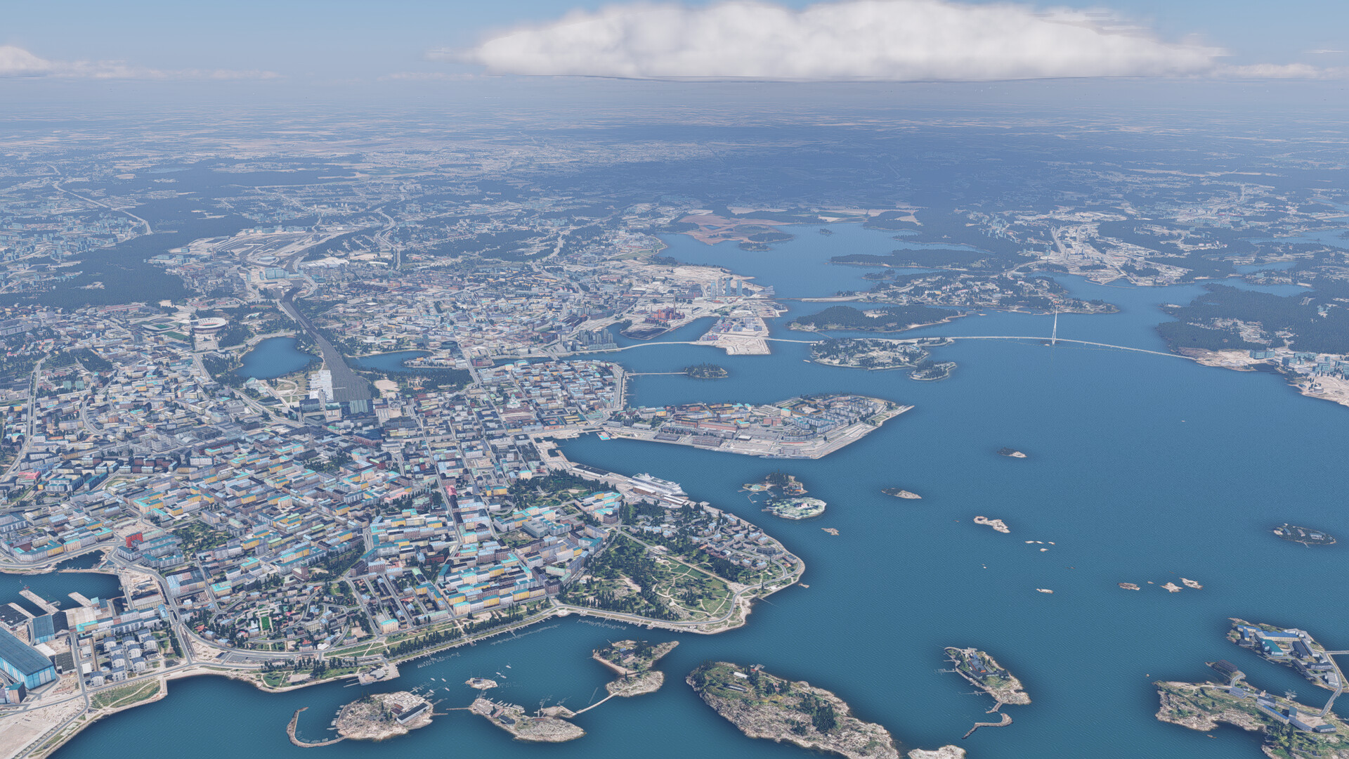 Custom OSM-based facades throughout the region – Southern Finland's excellent OSM data ensures dense and accurate building coverage