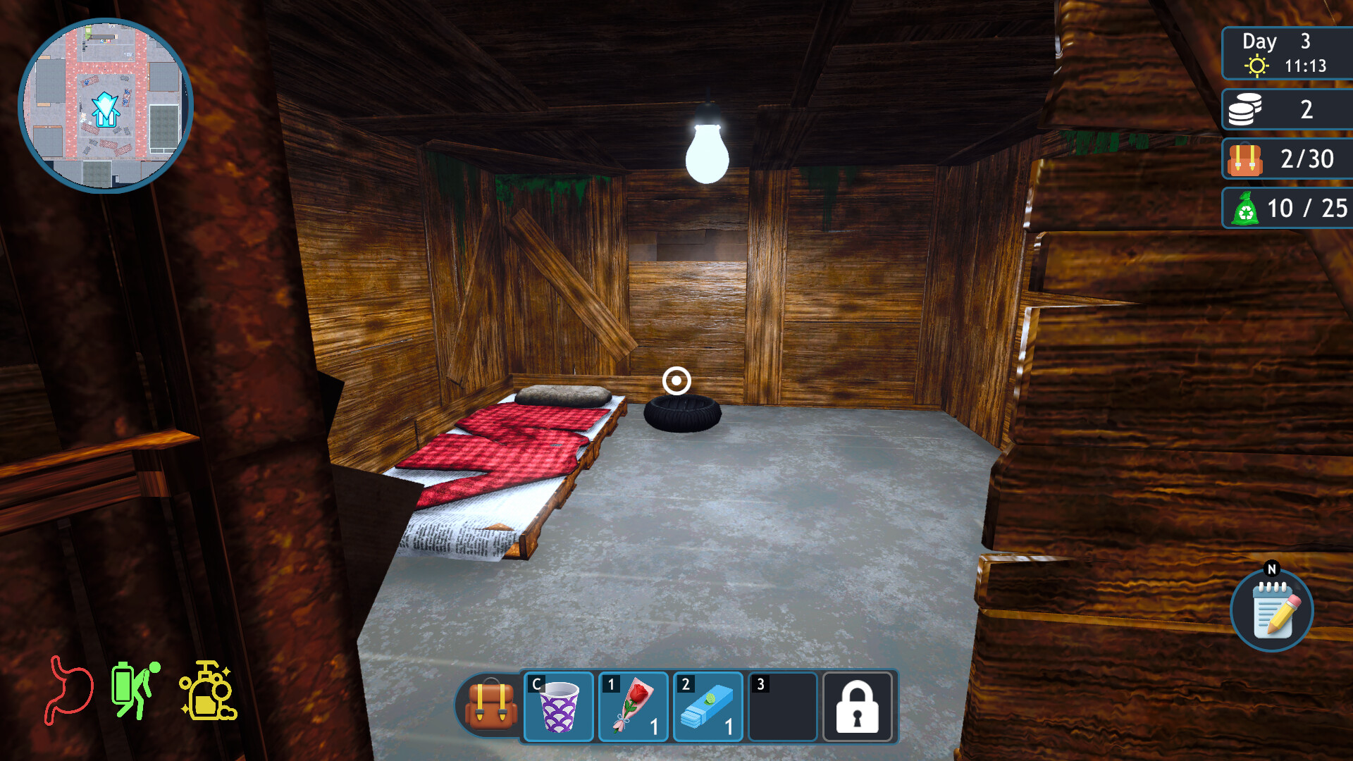 Ночью возвращайся в своё жалкое убежище — отдохни, спрячь свои вещи и постепенно преврати этот полуразвалившийся сарай в безопасный и уютный дом.