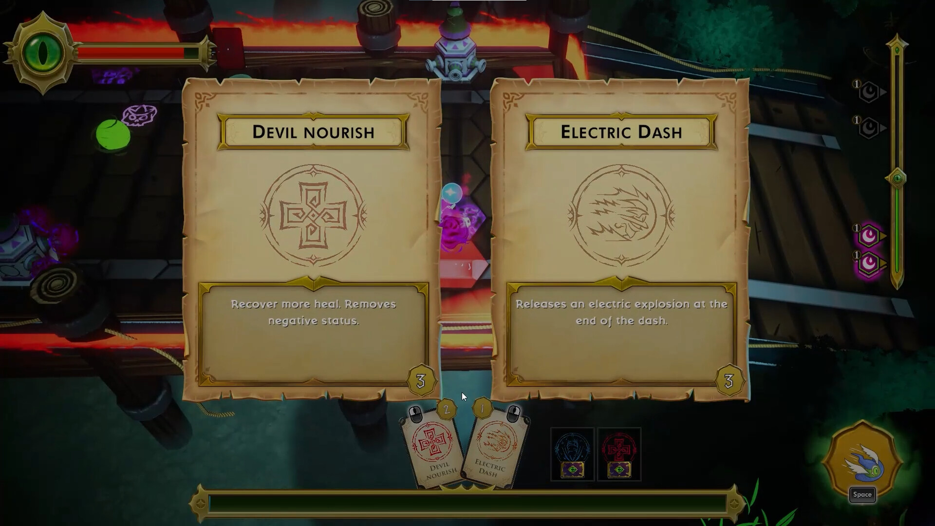 You are a little imp who, imbued with your master's powers, will make your way to the witch's house in her swamp, destroying enemies created by her and freeing all affected areas from their corruption. In this friendly and terrifying auto-battler, you will collect the souls of enemies trapped by the witch to power your own attacks. Level by level, you will unlock new powers that your master will give you and you will be able to put together your own set of attacks and skills to face everything that the witch can throw at you.