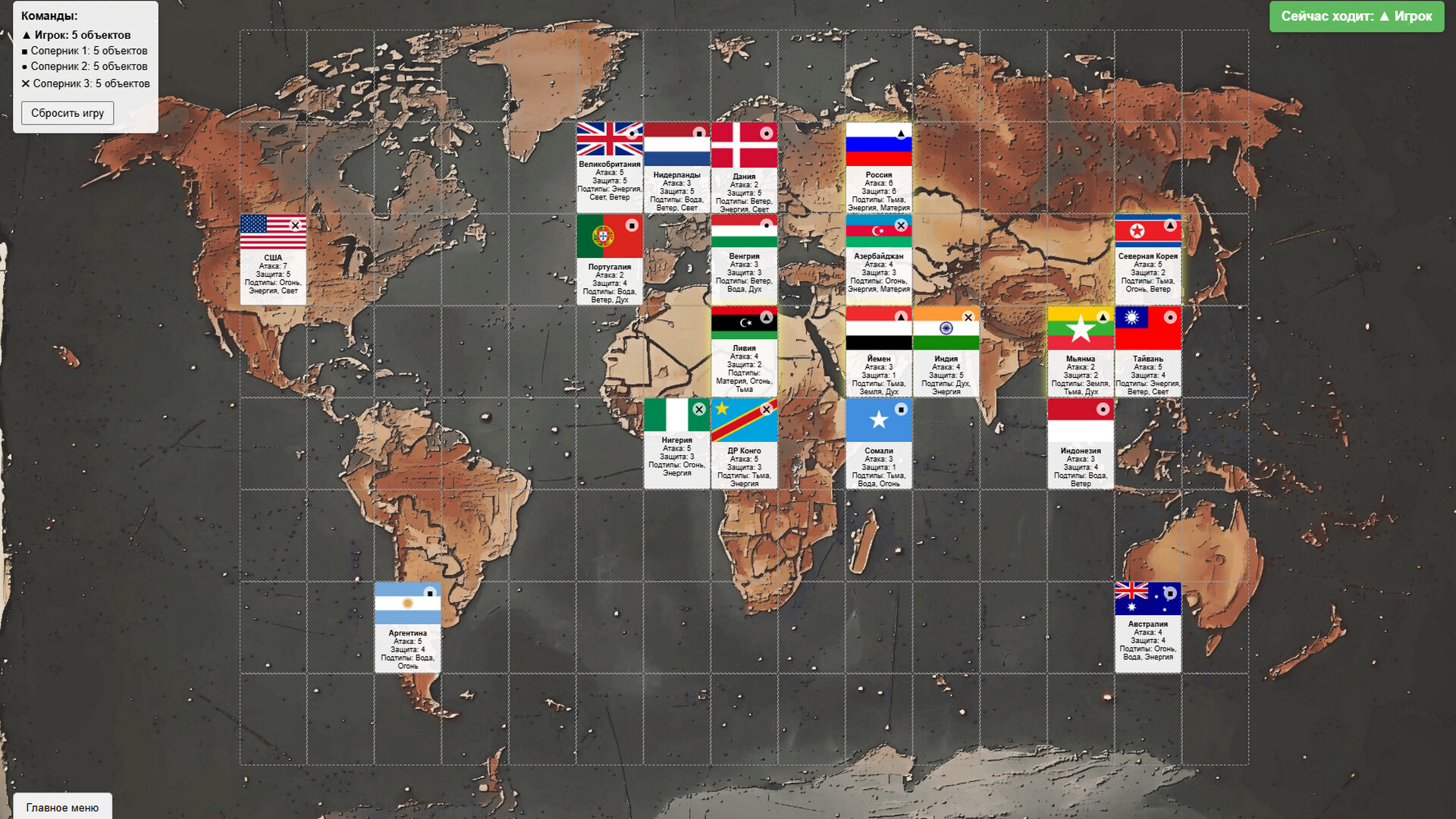 GLOBAL CONTROL COUNTRIES имеет новаторскую карточную механику боя, которая нигде не встречается