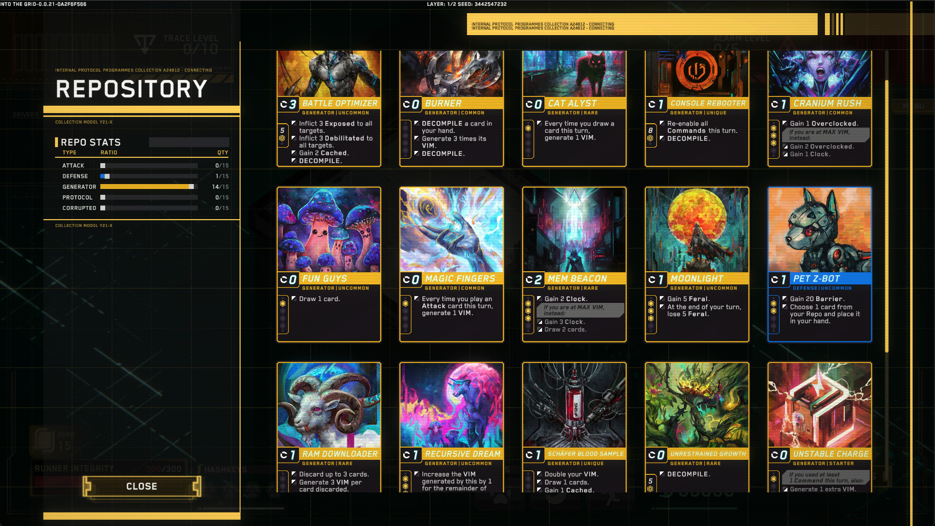 Репозиторий (Repo) — это ваш арсенал, а карты его программ — ваше оружие. Находите новые Программы (Programs) по мере исследования сети, используйте ненужные для улучшения более важных программ. Ищите уникальные комбинации, чтобы полностью раскрыть свою мощь.