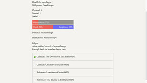 But this first glimpse is just that: a first glimpse. A gash in the fabric of reality as you knew it. Soon, you find yourself torn between the street gangs of the Downtown Eastside, RMCP special ops, a coterie of Thin Blooded vampires, multiple secret hunter societies, and the Chinese Triads. The shadow world just goes deeper and deeper, and it seems like someone is ready and willing to betray you at every turn. Of course, each of them has something to offer you: a home, a job, a career? Money, glory, vengeance, or immortality?